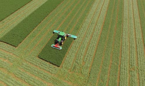 - La combinaison Kverneland 5087M couplée à une 2832F permet de faucher 8,75m en un seul passage.
